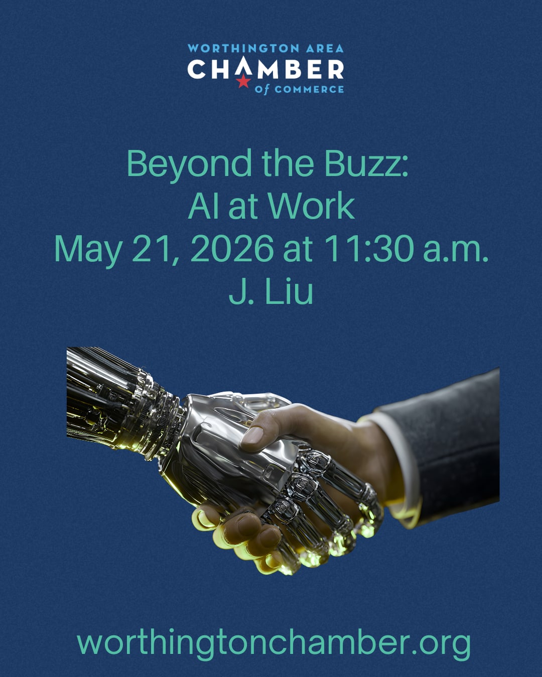 Beyond the Buzz: AI at Work Quarterly Member Luncheon, Thursday, May 21 | 11:30 a.m. – 1:00 p.m. J. Liu Restaurant & Bar | Worthington